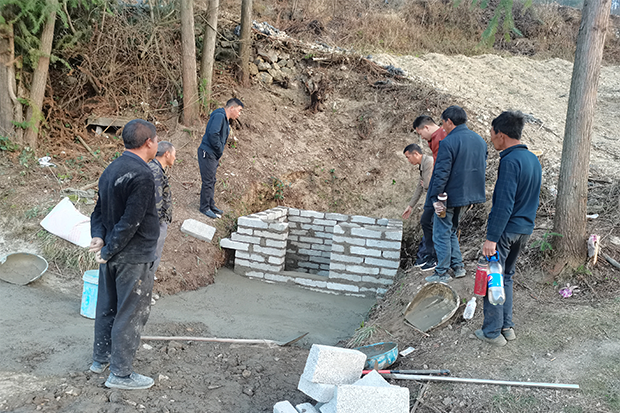 為了防止后續(xù)雨季到來后,周圍的泥土被沖進(jìn)水里面,余剛等人建議用水泥磚將水源圍起來。在云貴鄉(xiāng)人民政府的大力支持和村民們的積極響應(yīng)下,各類施工物資迅速準(zhǔn)備到位并開始施工。