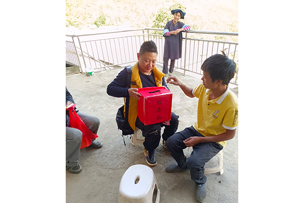 圖為聶珂設(shè)置流動(dòng)投票箱組織開(kāi)展村委換屆選舉